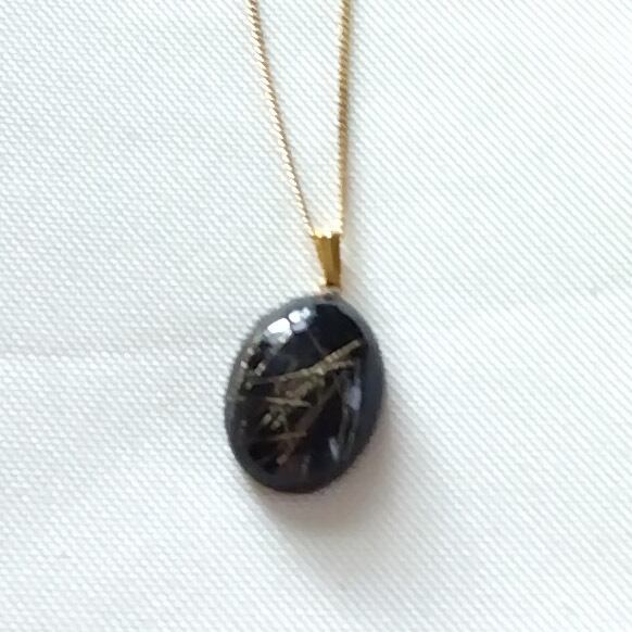 飾り部分の色が黒ベースの、落ち着いた雰囲気のネックレスです❗